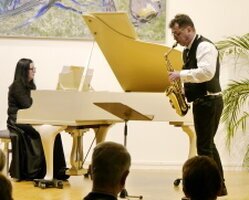 Bilder vom Konzert (15.2.2020) mit Dhurata Lazlo, Pianistin und Zija Bejleri, Saxophonist.